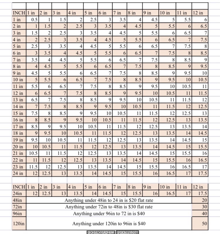 We sell our vinyl decals by the half inch. I will fit your decal on the mat in the smallest area as I can. Example: if your decal fits in a 5in x 5in it’s $4.50 total