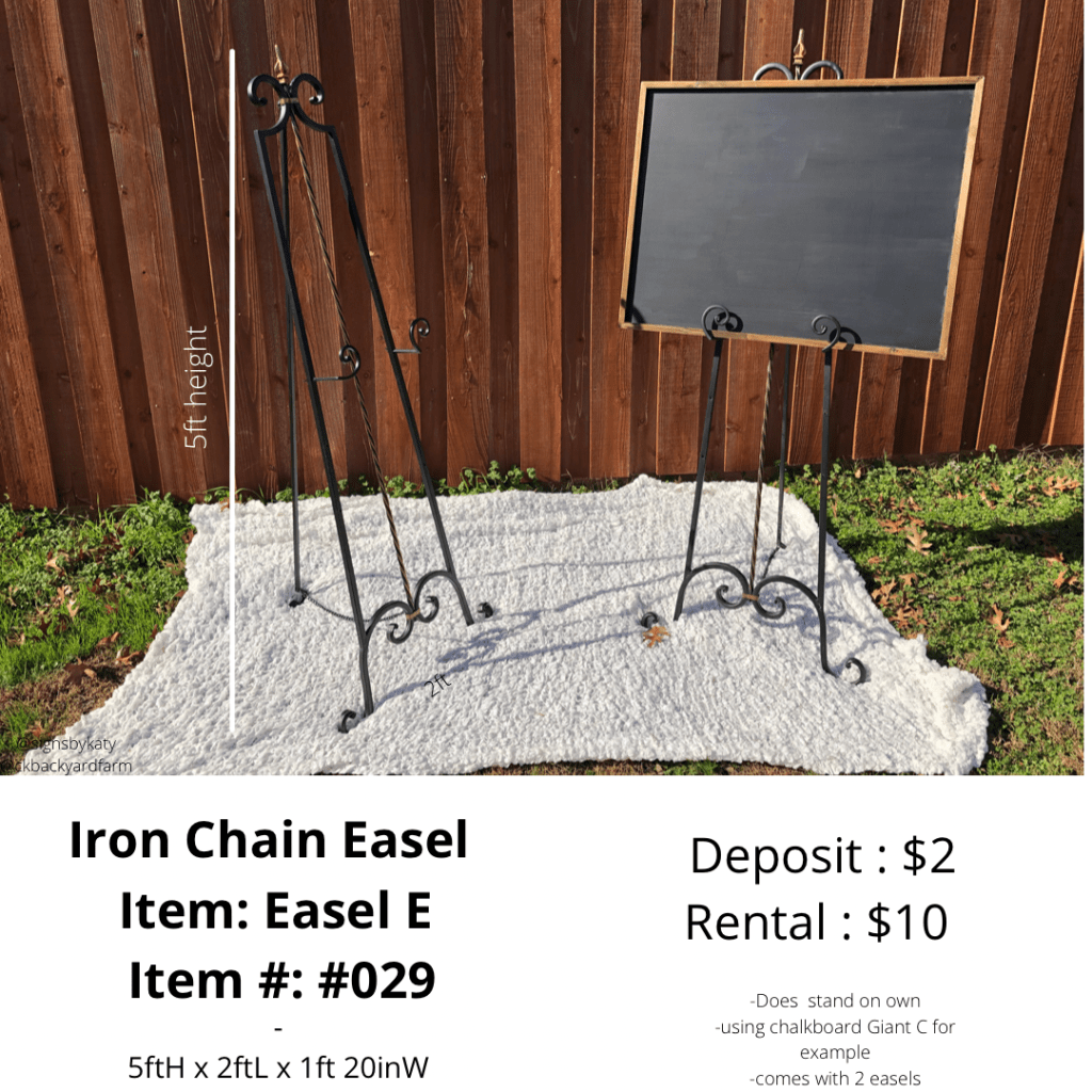 We offer easels in all different shapes and sizes! You can also check out our chalkboard rentals HERE that go with the easels perfectly!